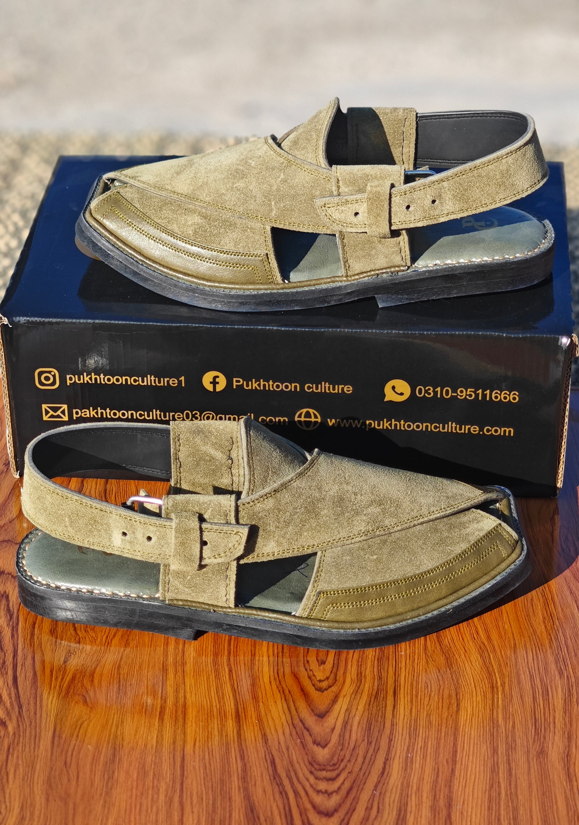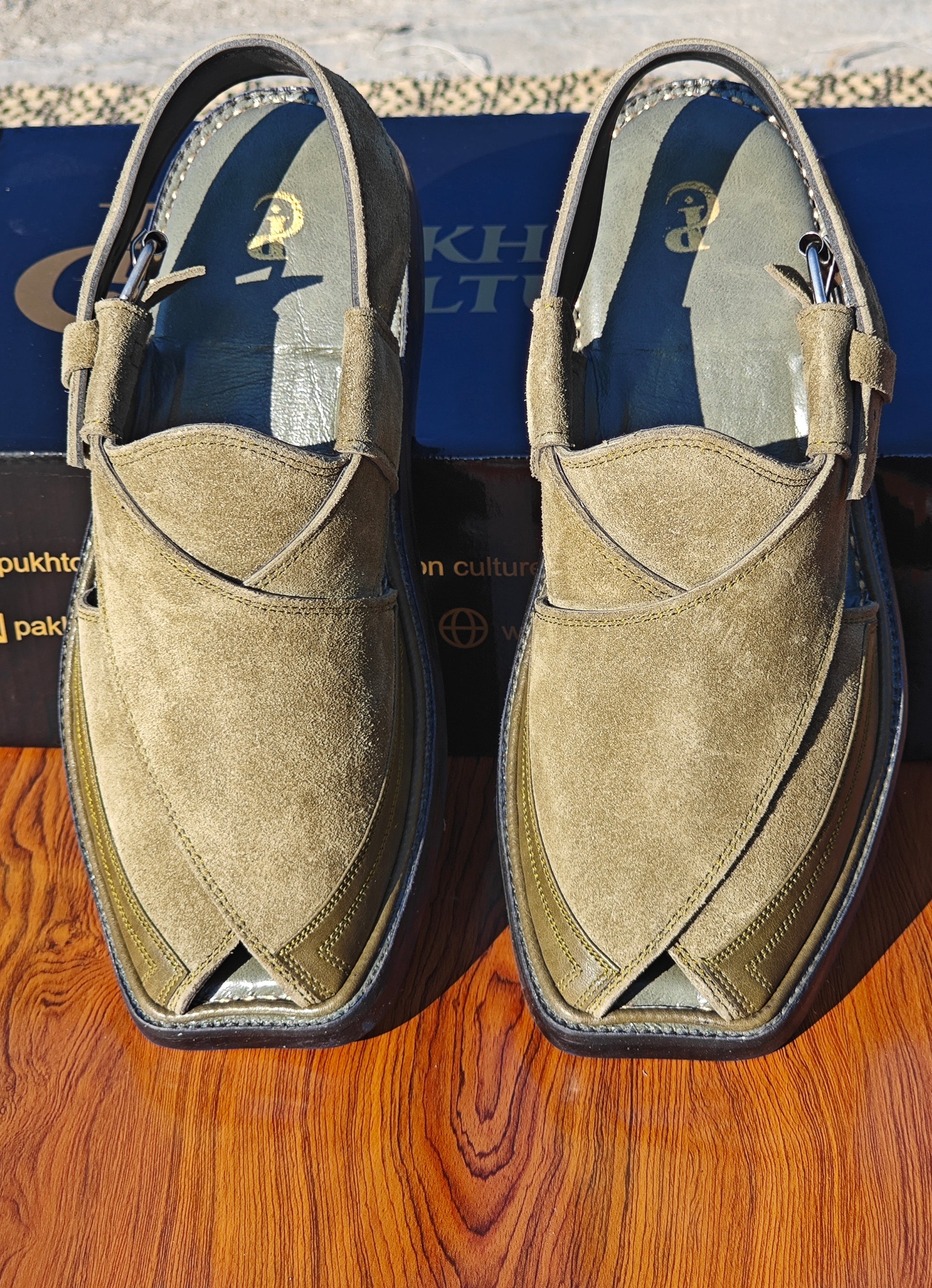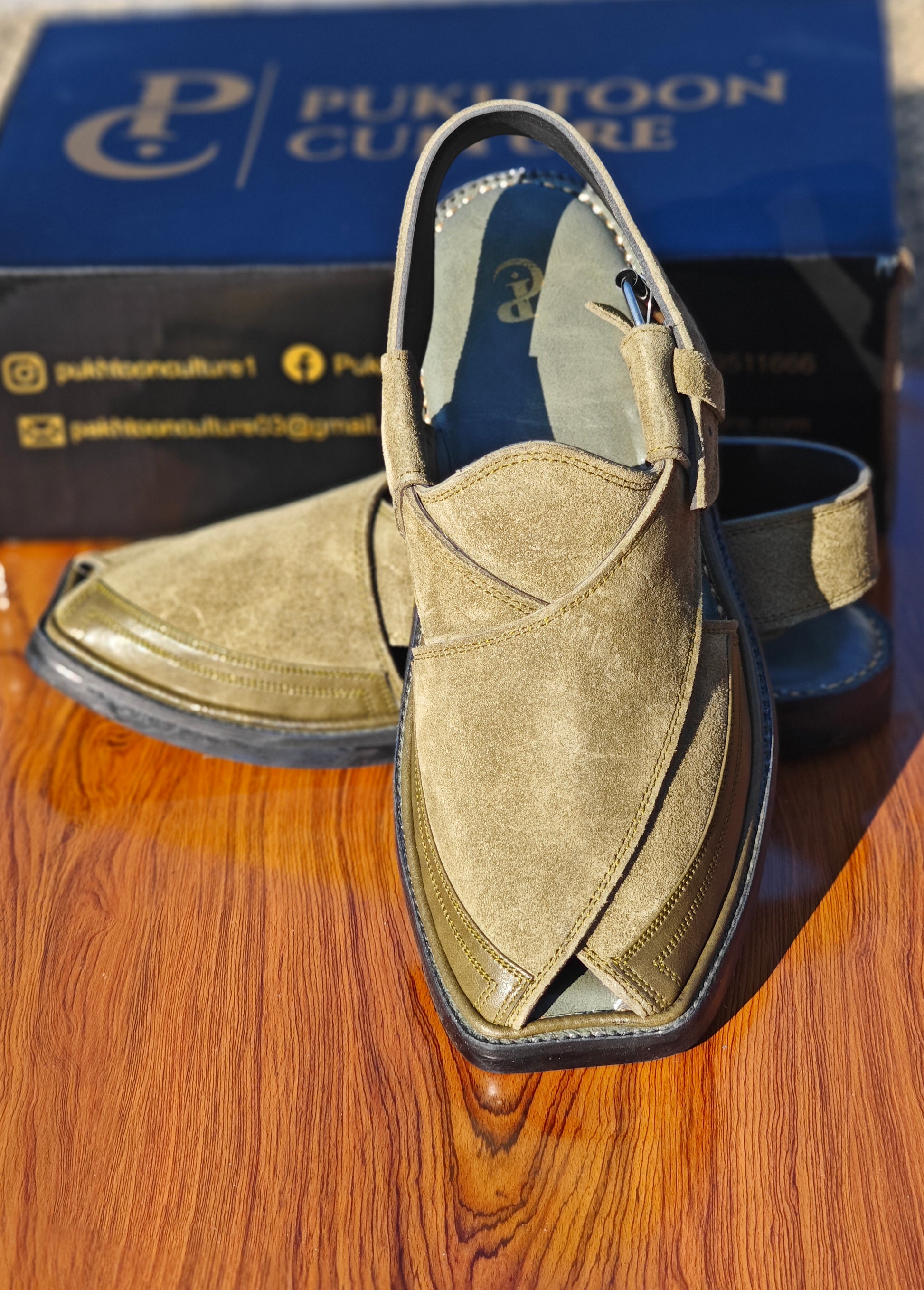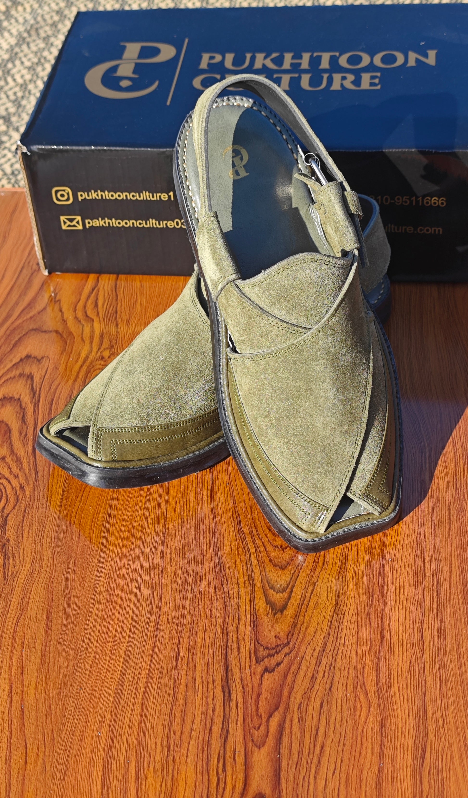 # Elite Green Sabar Chapple Crafted from premium green leather, this traditional Sabar Chapple combines authentic Pukhtoon craftsmanship with refined elegance. The soft, supple material ensures comfort throughout the day, while the classic design reflects generations of cultural heritage. Hand-finished details showcase meticulous attention to quality, making this footwear ideal for both formal occasions and everyday wear. A versatile addition to any wardrobe that honors tradition while maintaining contemporary appeal.